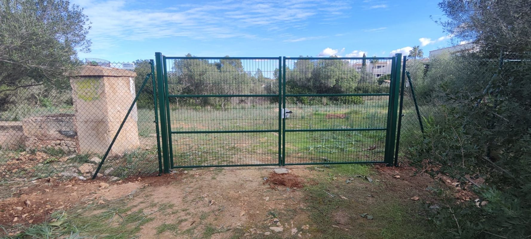 CLIENTE: CP RESIDENCIA CALA VIÑAS ED REGAL CALVIA DESCRIPCIÓN: CERRAMIENTO TIPO VERJA MAXI-FAX PLAST. VERDE A 1,50MH Y TRAMO CON TELA OCULTACIÓN COLOR VERDE.